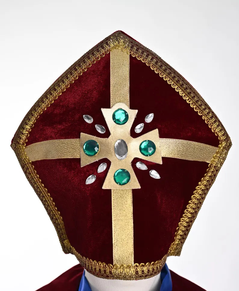 Introducing our premium, high-quality men's Burgundy Saint Nicholas Costume - a luxurious and timeless ensemble perfect for bringing the legend of Santa Claus to life.