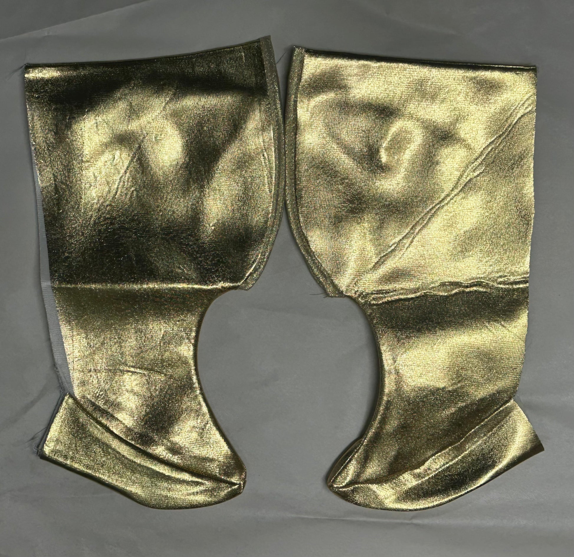 To complete the look, the costume includes a pair of metallic gold pointed shoes, designed for indoor wear.